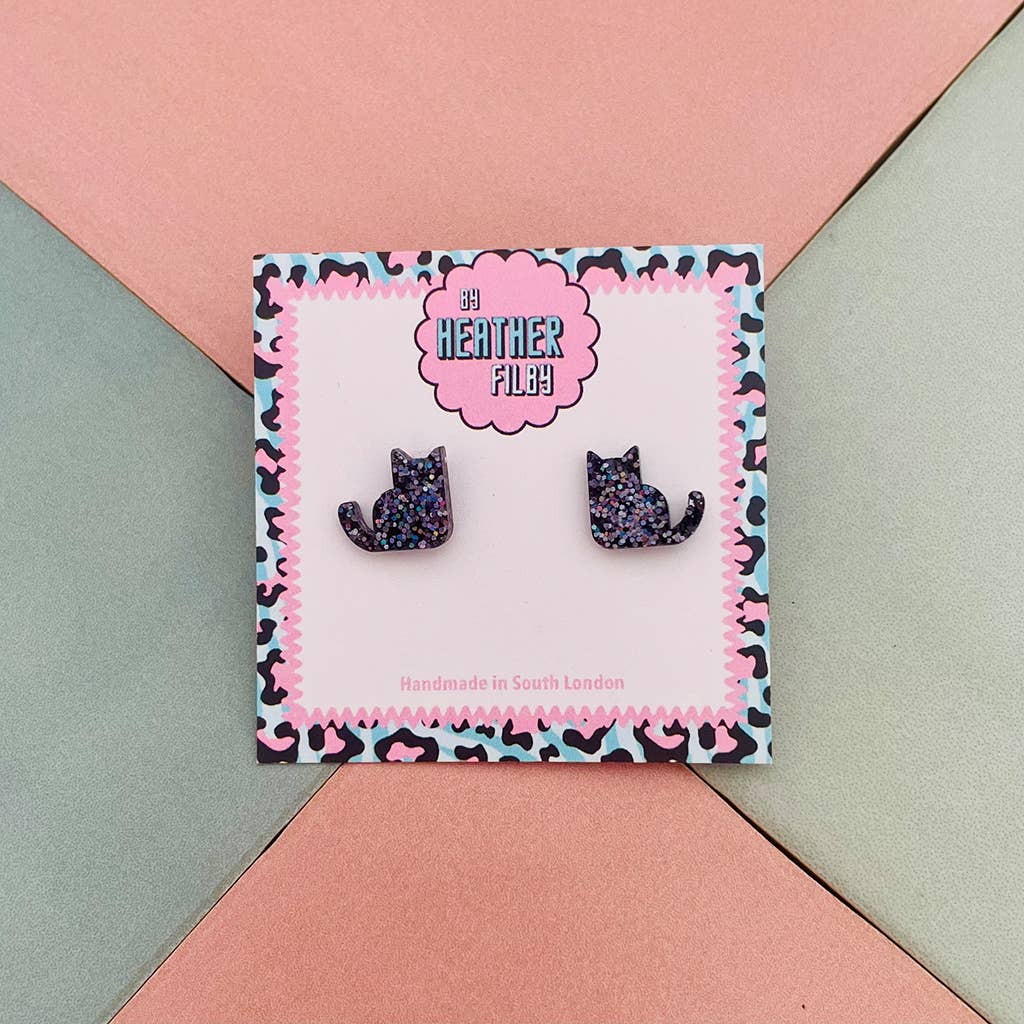 Black Cat Glitter Stud Earrings - Best Seller - Violet Elizabeth - Jewellery