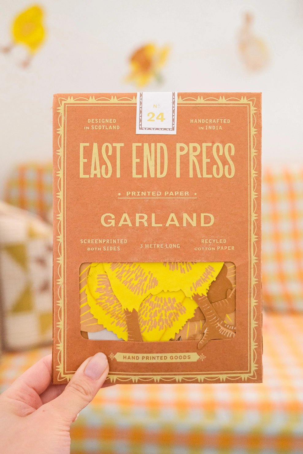 Filled with daffodils, fluffy chicks and rabbits; this garland is a classic for Spring time decorating.
