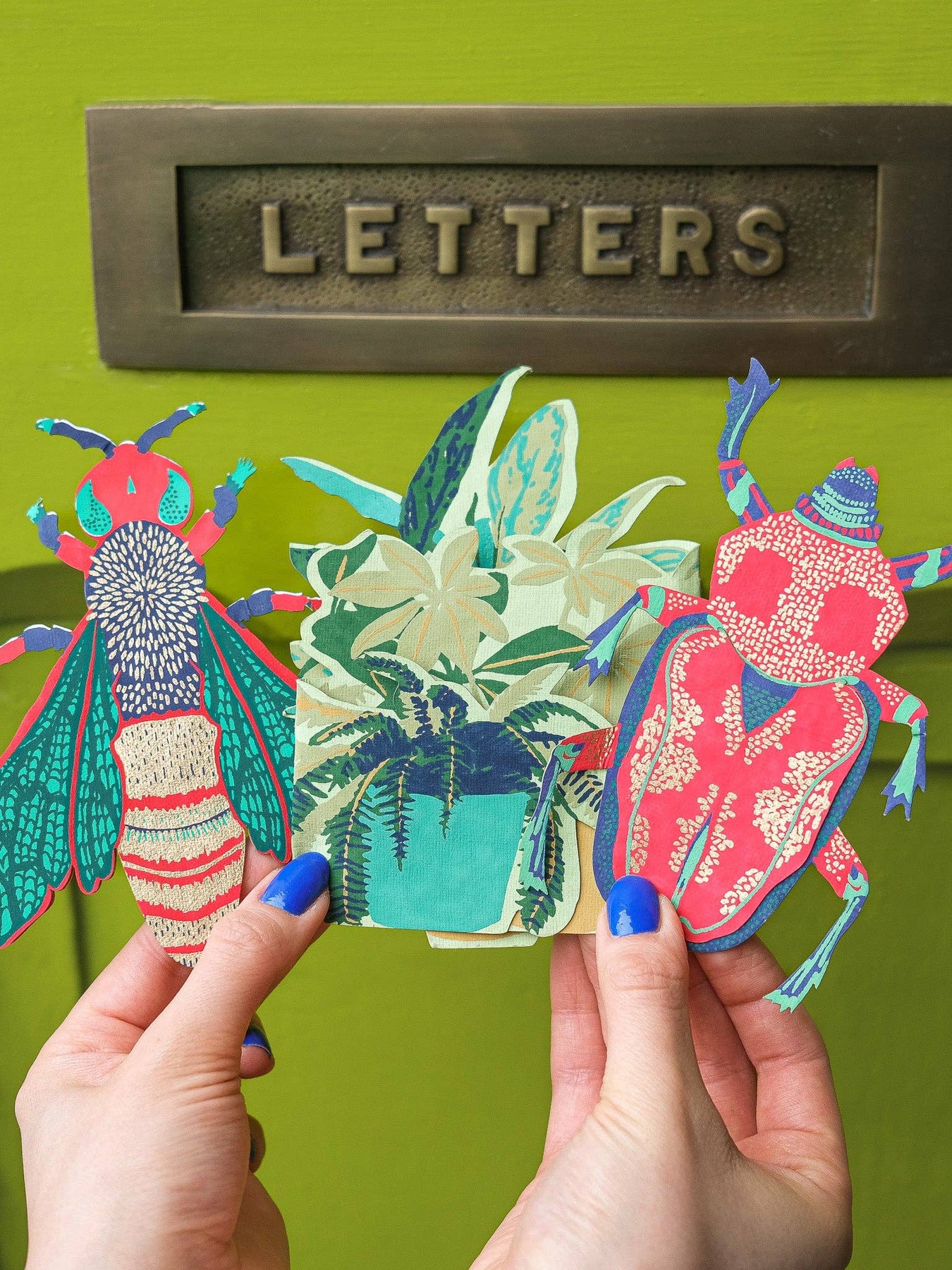 Die cut and embellished with metallic gold details, this card is a work of art! Leave your message on the panel beneath the wasp's wings. Comes with a matching envelope in bio cello.