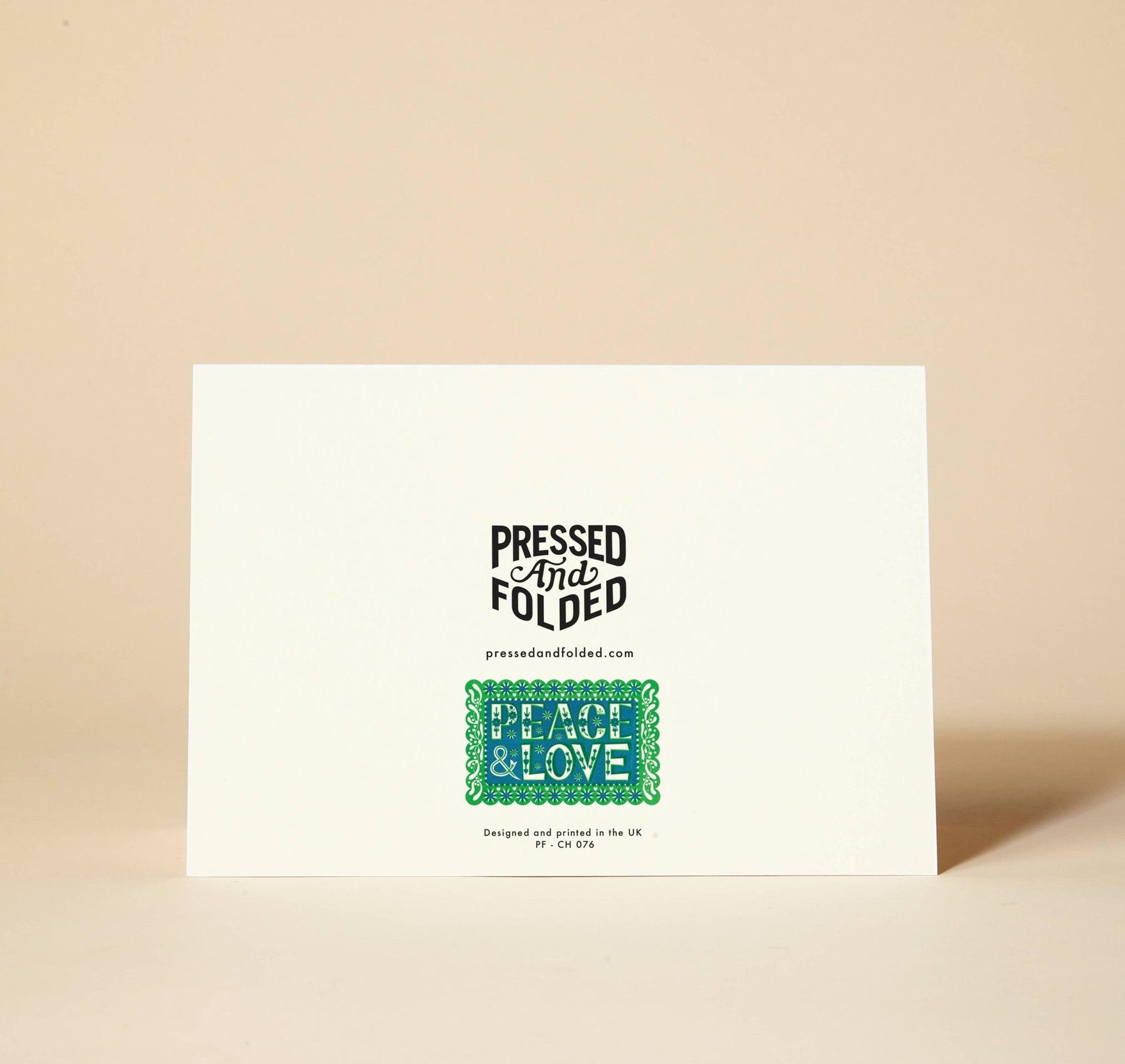 Packaged in a biodegradable clear cello bag with a 100% recycled kraft envelope. Printed on British made, fsc certified. 320gsm card. 120mm x 170mm folded. Total size when packaged 125 x 175mm.
