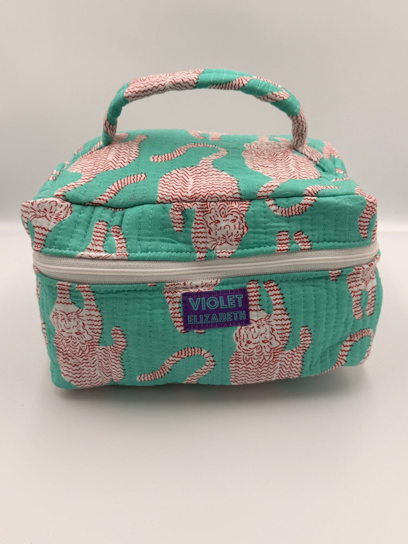 Generously sized vanity washbag in signature block-printed cotton. Big enough for all your essentials, with a water-resistant lining and sturdy zip.