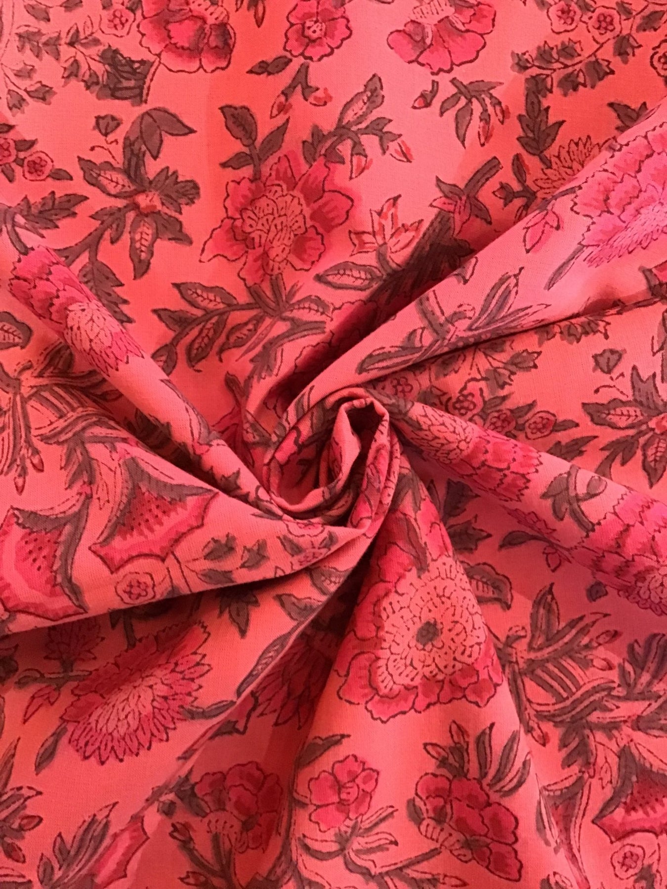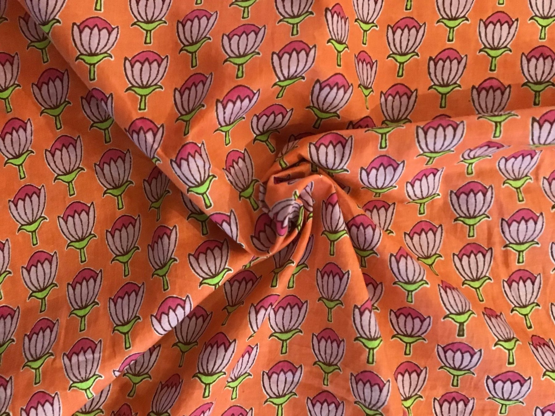 Pink/Orange Flowers Screen Printed Screen Printed Cotton Fabric
