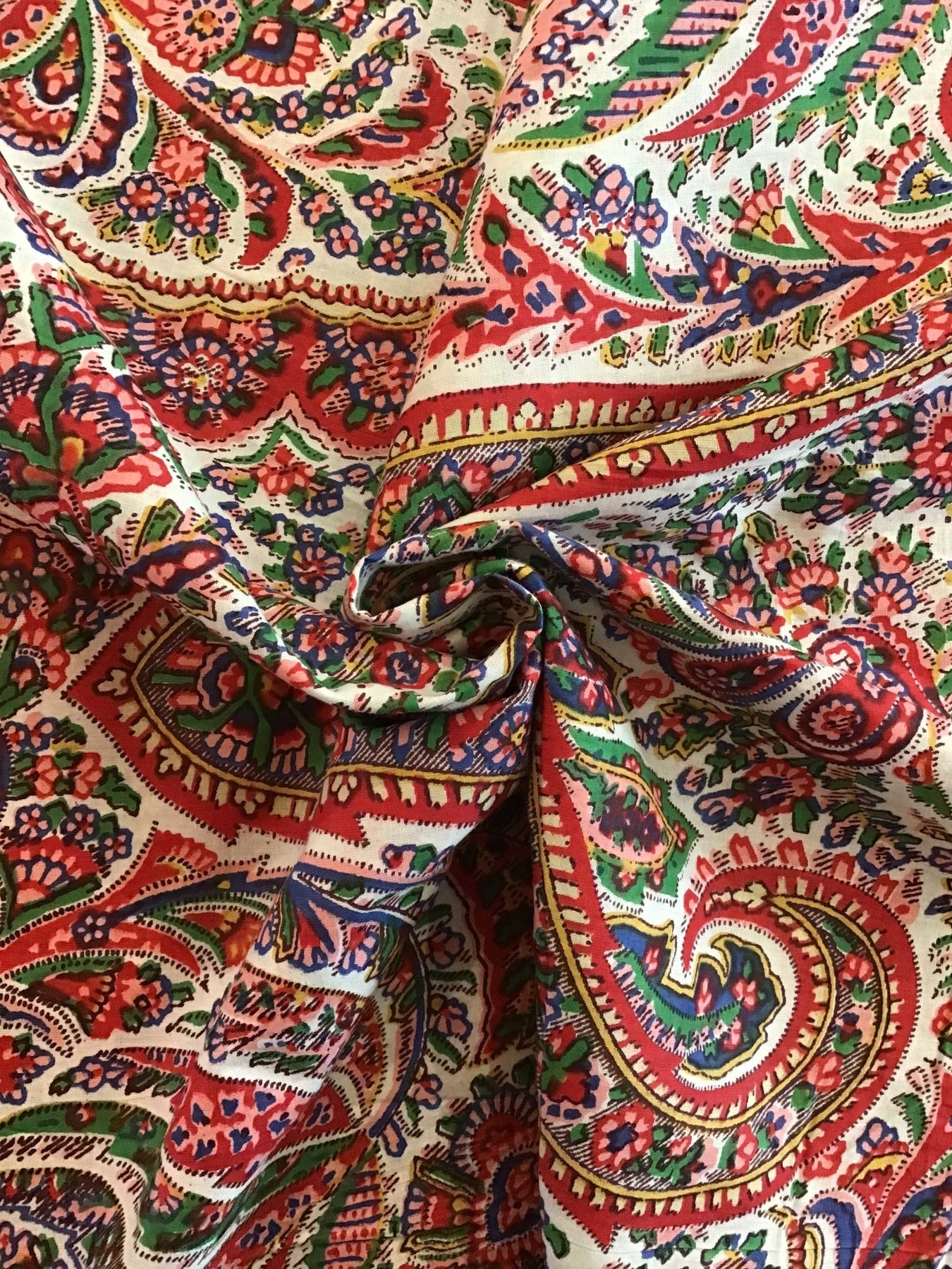 Dark Blue/Red Paisley Screen Printed Screen Printed Cotton Fabric