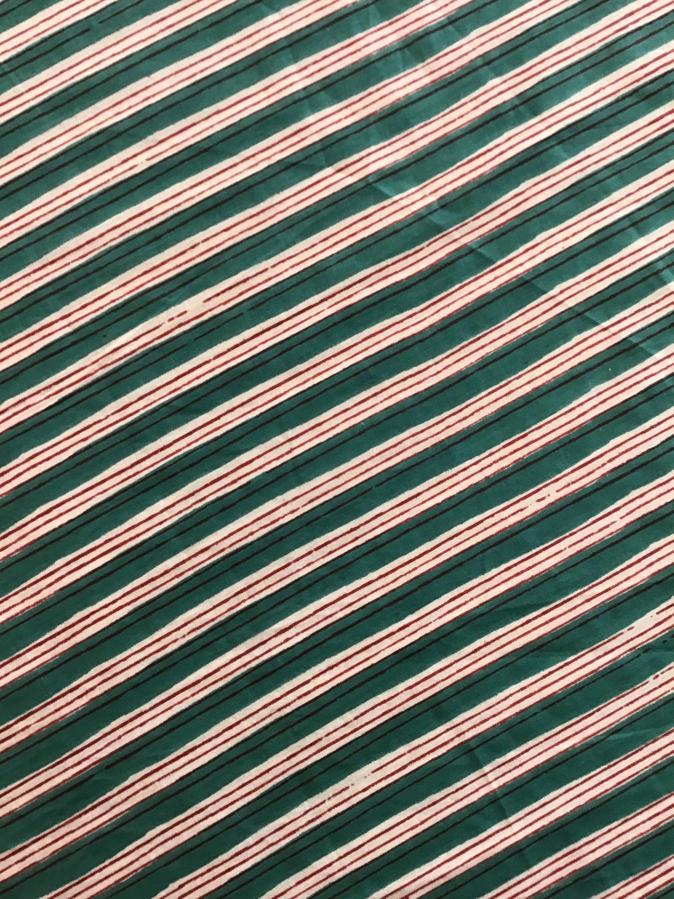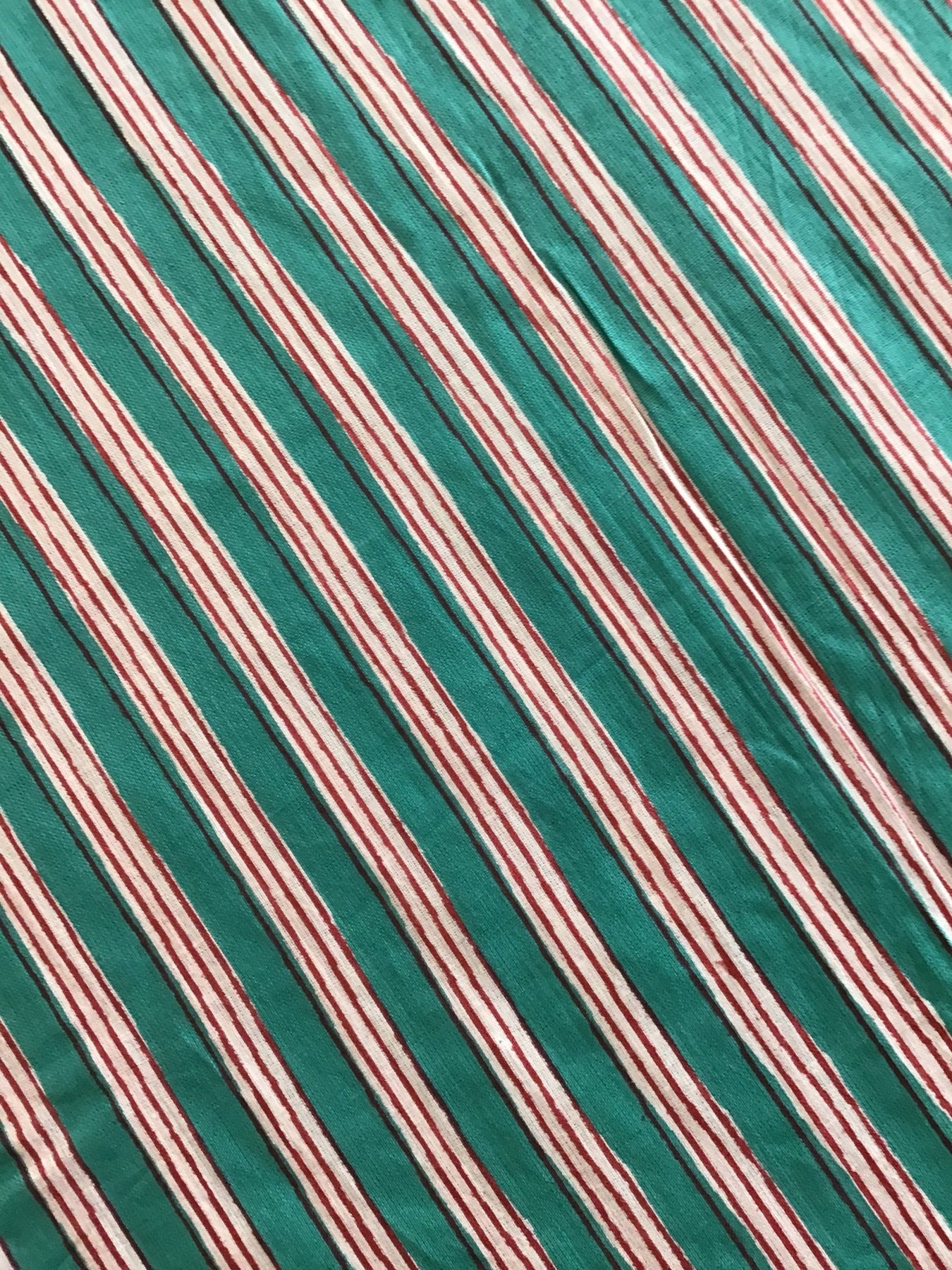 Red, Green And White Stripe Screen Printed Screen Printed Cotton Fabric